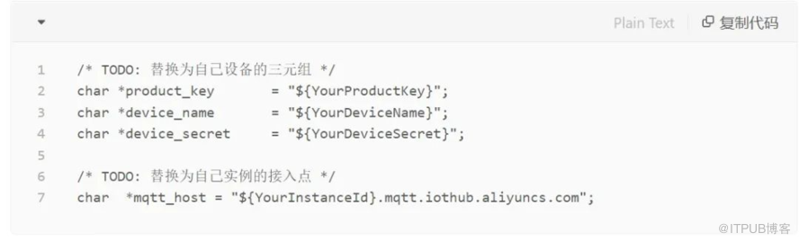 打开demo源码(./demos/mqtt_basic_demo.c),修改设备的认证信息及接入点信息,保存。