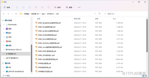 说明:自动跳转到DM8安装目录的doc子目录下,包含21个用户手册pdf文件。