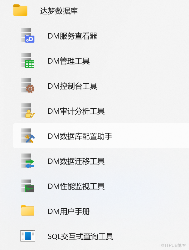 说明:选择:开始菜单-->达梦数据库-->DM数据库配置助手。