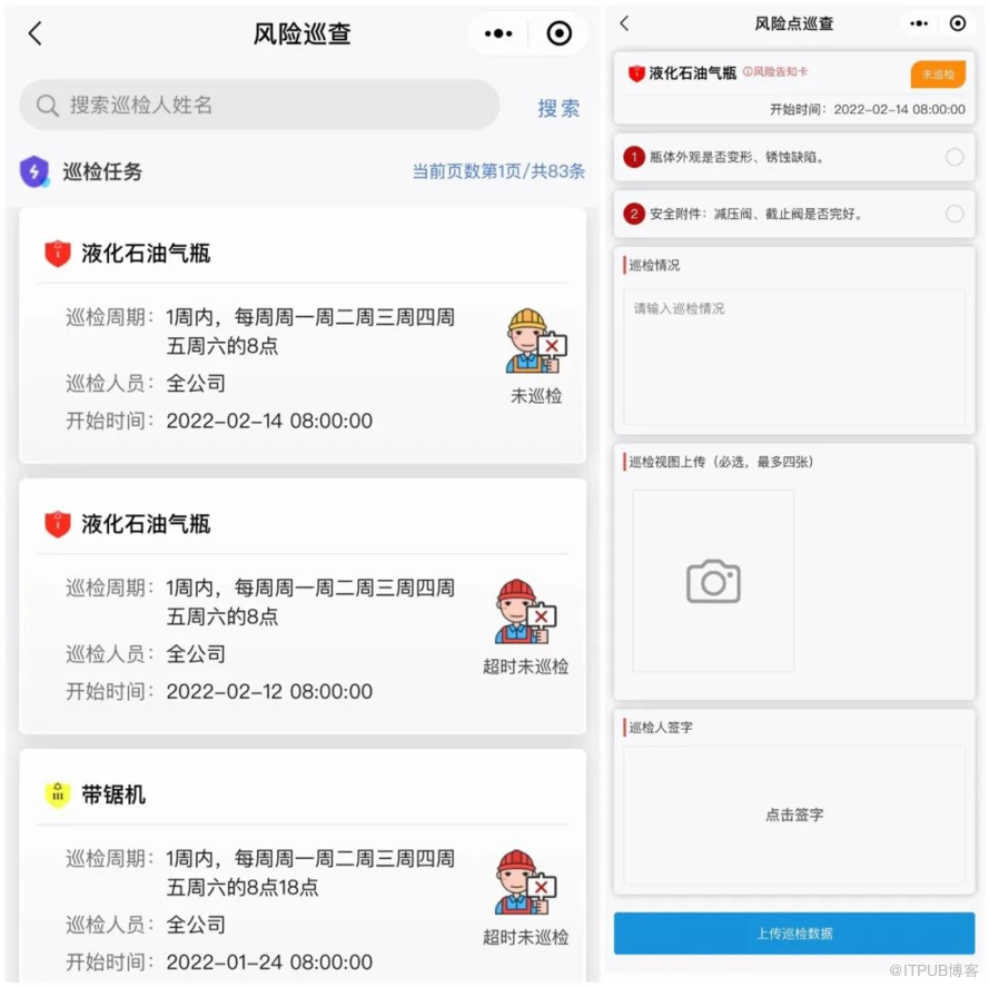 根据风险点级别,明确巡检任务,制定巡检周期。电脑端设置好巡检任务之后,手机端会按期发送巡检提醒,巡检人员打开APP也可直接看到未完成的巡检任务,保证按时巡检。
