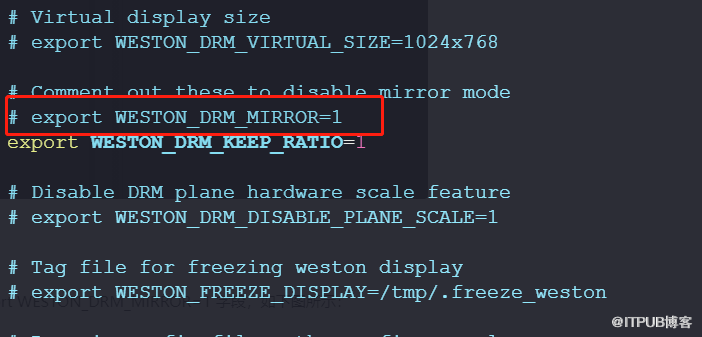 修改/etc/profile.d/weston.sh,注释 export WESTON_DRM_MIRROR=1 字段,如下图所示: