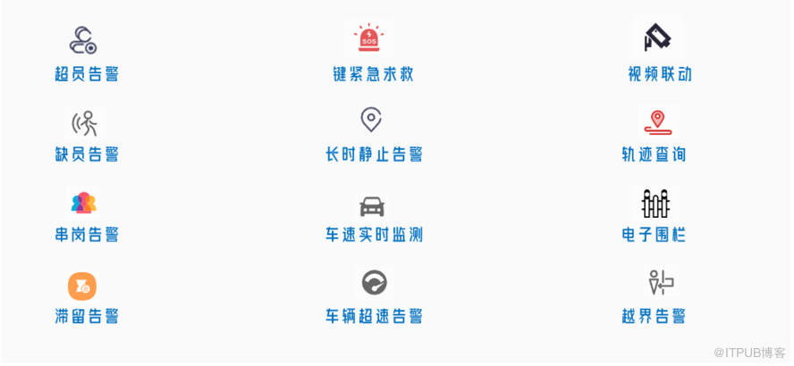 电子围栏 : 对定位区域进行管理,实现人、车安全管理 ;