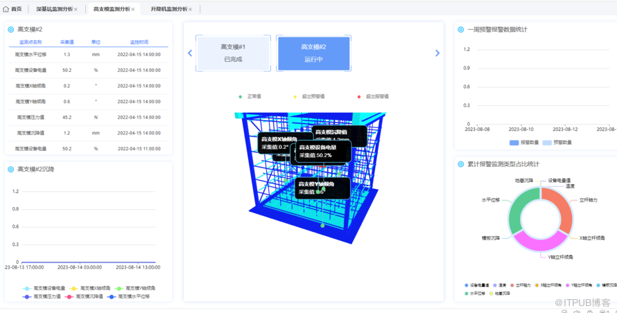 通过对高大模板支撑系统的模板沉降、立杆的倾斜、支架变形和立杆轴。