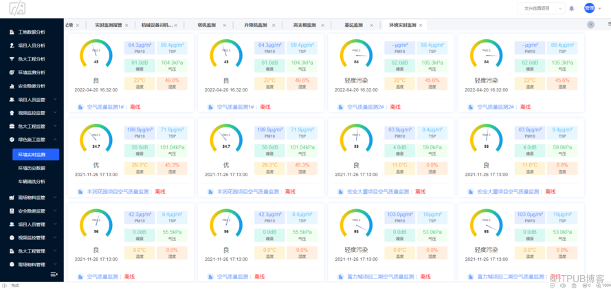 针对扬尘、噪声设置压线监测,监测到污染源时进行分级预警报警,监测到PM10指标超标时,自动启动喷淋系统,支持颗粒物(PM10/PM2.5/TSP)监测、噪声监测、气象五参数监测,视频监控录像取证,实现工地科技智慧管理,高效节能,构建建筑工地管理新生态。