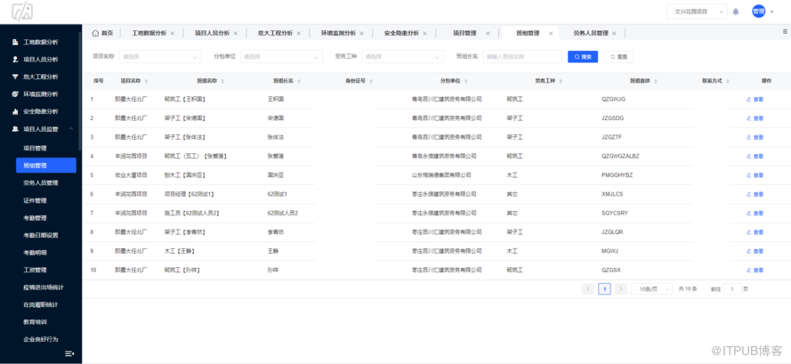 系统可快捷以创建各个班组,设立各个班组负责人,对工地人员以班组和工种进行分类管理。