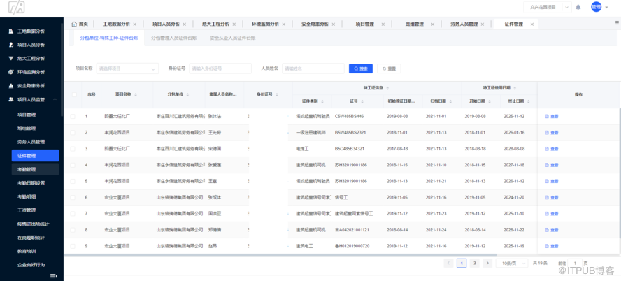 通过人员总览、实名制查询、持证信息、人员考勤、人员考勤统计、人员考勤规则设置、班组管理、部门管理、薪资管理九大功能模块。实现对工地人员实时监控管理,随时随地了解工地用工情况、提高安全管理及对工地整体的把控能力。