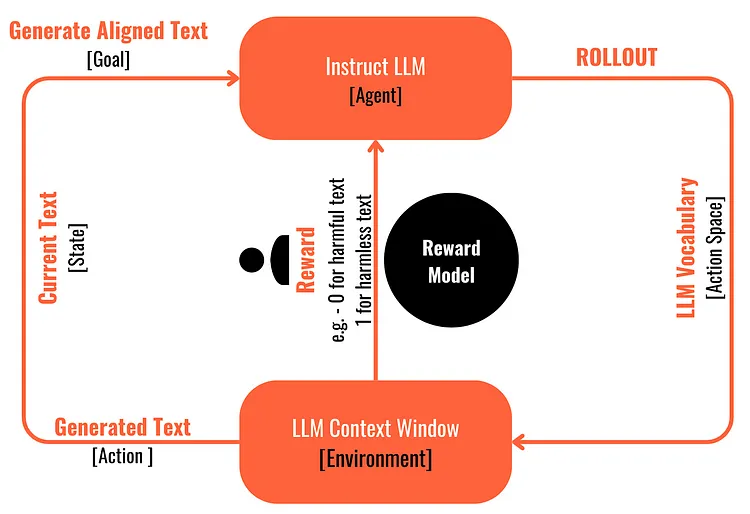 - 该行动的结果(生成的文本)由人类评估,并在结果(生成的文本)与目标一致时给予奖励。如果结果与目标不一致,则给予负奖励或不给予奖励。这是一个迭代过程,每一步都称为“rollout”。模型权重的调整方式是在流程结束时使总奖励最大化。