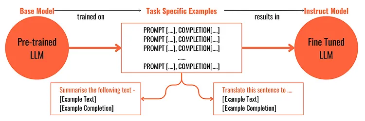 - 微调是一种有监督的学习过程,我们可以利用提示词-文本补全内容对(prompt-completion pairs)的标注数据集来调整 LLM 的权重。