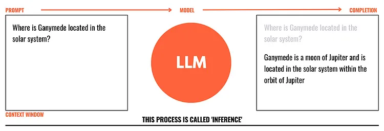 - 模型根据给定提示词进行文本补全的过程称为推理。