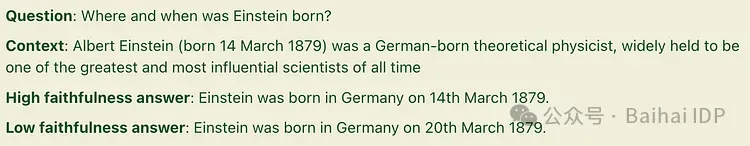 图 2:Faithfulness 分数高和 Faithfulness 分数低的模型回答对比示例