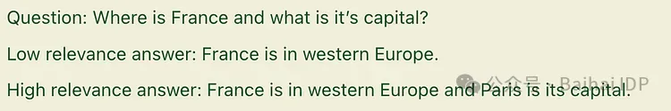图 3:相关程度高的答案和相关程度低的模型回答对比示例