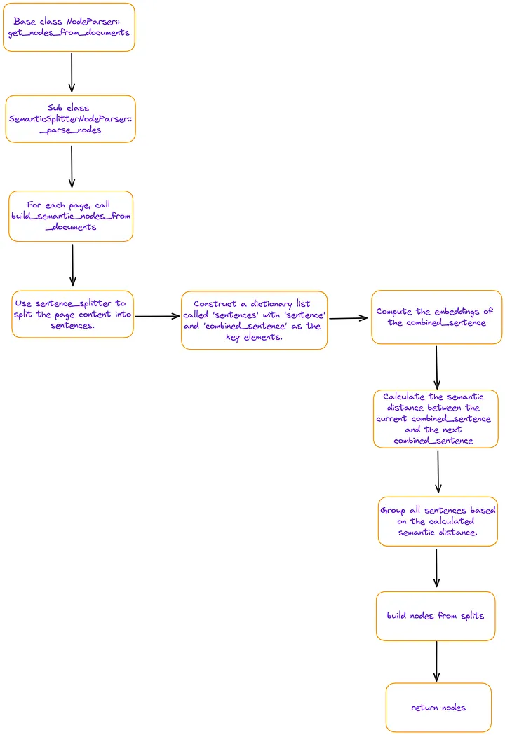 图 2: splitter.get_nodes_from_documents[4] 函数的主要逻辑。图片由原文作者提供。