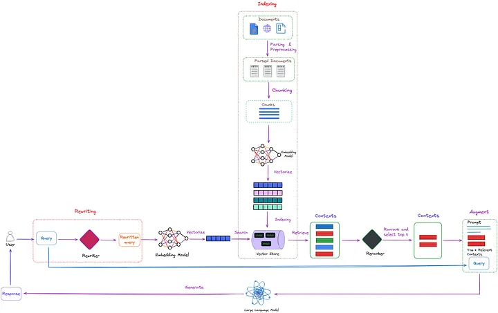 图 1: RAG 中的 Query rewriting 技术(由红色虚线框标记)。图片由作者提供。