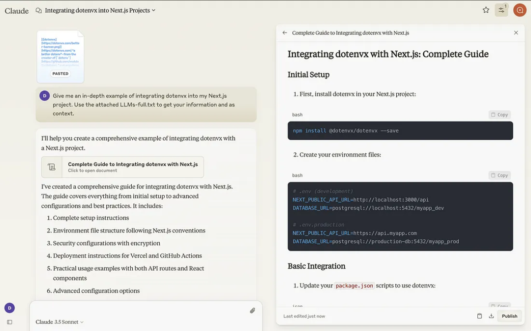 在 Claude 中使用 llms-full.txt 文件的截图(图片由作者提供)