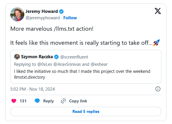 Jeremy Howard 在 X 的个人资料,他是 LLMs.txt Web 标准提案的发起者