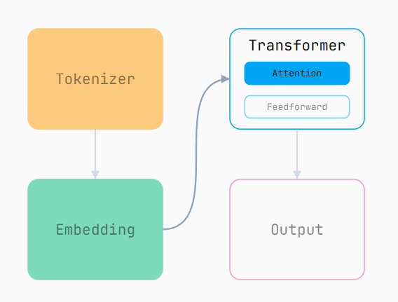 至此,tokenizer 和 embedding 阶段所做的全部工作,都是为了把原始文本转换成 LLM 能处理的形式。接下来,我们来看看这些数据进入 transformer 阶段后会发生什么。