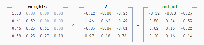 接下来就只剩下对 token embeddings 进行加权混合了,谢天谢地,这一步比计算权重要简单得多。