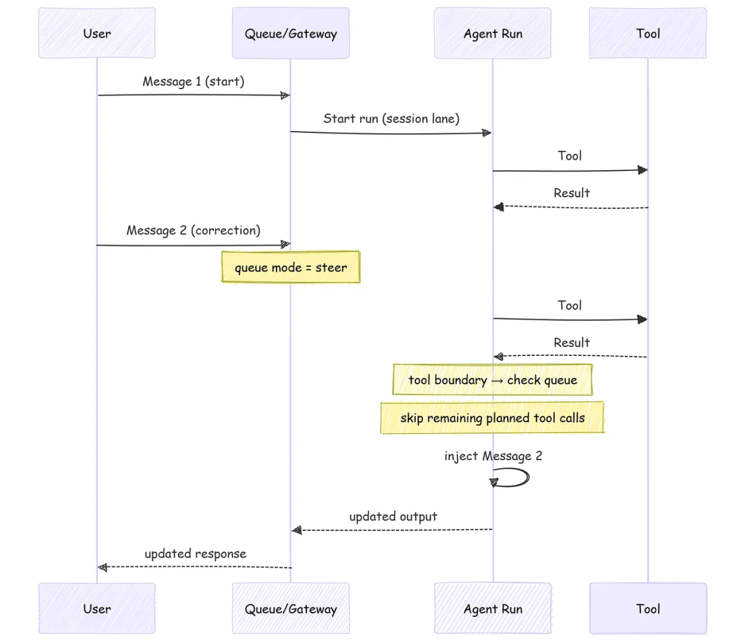 如果你见过 Agent “疯狂刷屏回复”,或者在执行中途“无视用户的纠正”,那么上文提到的队列模式(queue modes)就是控制这些行为的“调节旋钮”。