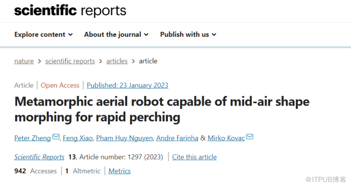 近日,伦敦帝国理工学院空中机器人实验室,从滑翔和树栖哺乳动物(如蜜袋鼯和树懒)中汲取灵感,设计出了能够在形态之间转换,通过单向肌腱驱动进行飞行和栖息的四旋翼机器人,以减少机器人在空中的能源消耗。相关研究论文已被刊登在《Scientific reports》: