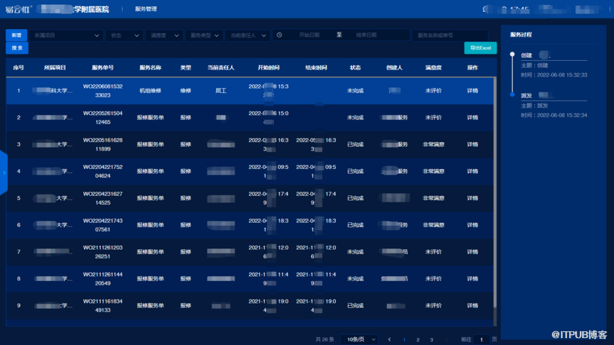 设备情况动态查询。操作者按照不同的身份和权限,通过输入账号进 医院后勤一站式服务平台,能直观地看到所属病区每台设备的名称、型号、规格、使用年限、使用情况、检修记录等内容。
