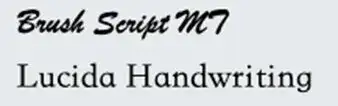 第四类,Cursive:草书字体,模仿人类的手写体。比如 Brush Script MT,Lucida Handwriting。