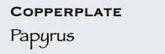 第五类,Fantasy:幻想字体,是装饰性、娱乐性字体。比如 Copperplate,Papyrus