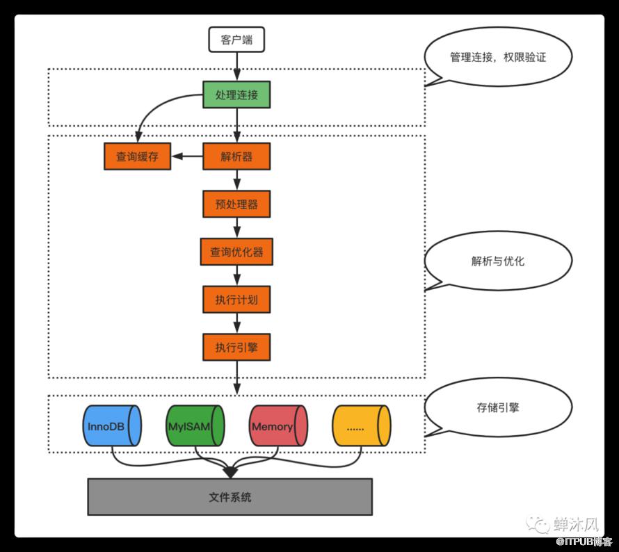 处理连接 解析与优化 存储引擎