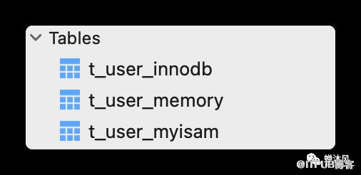 下面我们分别创建3张设置了不同存储引擎的表,t_user_innodb、t_user_myisam、t_user_memory