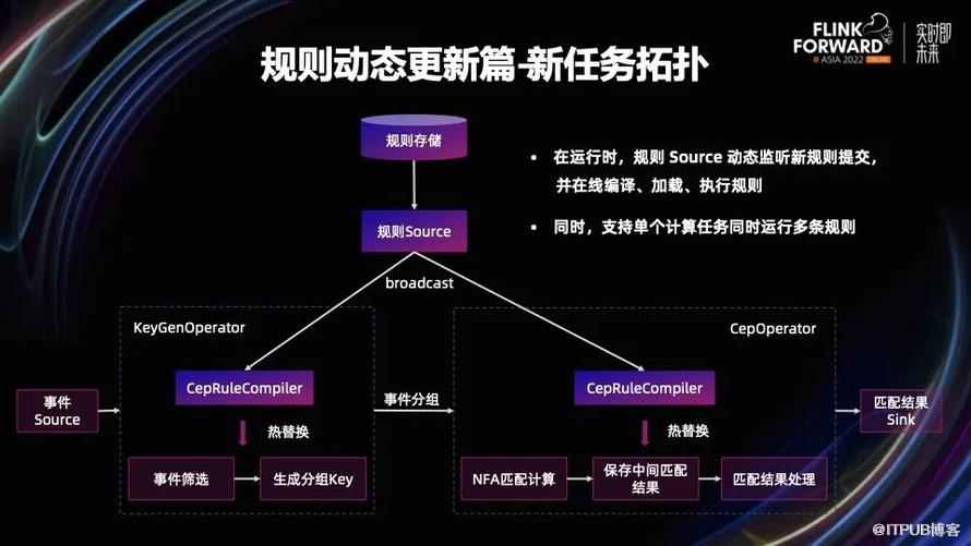 前面我们提到,当前的 Flink CEP 计算任务不支持动态提交规则。主要原因是在编译阶段 Flink CEP 规则计算逻辑就确定了,并且已经通过 NFACompiler 编译完毕。在运行时计算任务只能固定执行之前已经编译好的规则。那么我们是如何改造的呢?