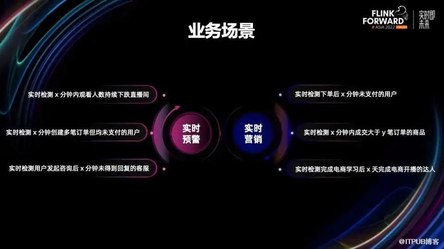 第一是实时预警场景,它是非常典型的业务诉求,把用户看数据的方式从大屏“盯盘”转换为“根据规则检测结果,主动推送”,这无疑对一些关键业务问题的发现和洞察起到至关重要的作用。有如下三个具体案例: