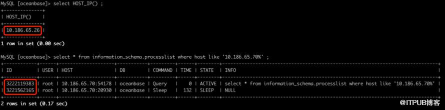 也可以通过直连后侧的observer,通过oceanbase.__all_virtual_processlist表获取连接ID;