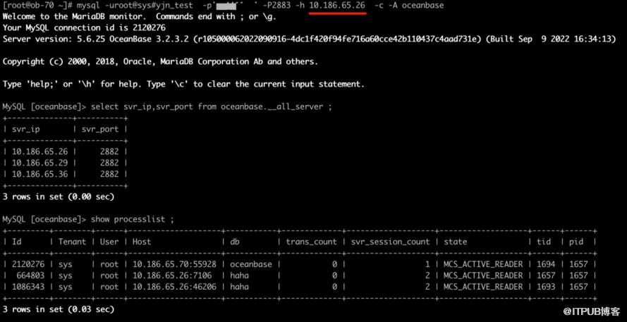 通过observer和通过obproxy登陆看到的 oceanbase.__all_virtual_processlist 的数据是⼀致的;