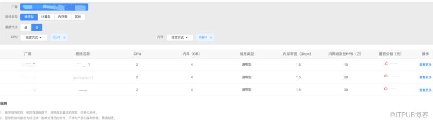 以云服务器智能推荐为例,通过调研各大云厂商提供的机型选择相关的参考指标: