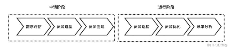整个成本的管理包括业务前期的需求评估阶段,厂商和产品选型阶段,资源创建阶段,资源的巡检以及账单的分析。