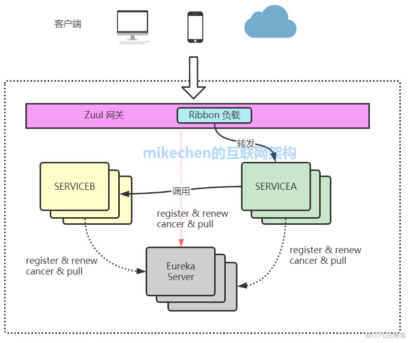 Zuul默认和Ribbon结合实现了负载均衡的功能,Ribbon就可基于某种负载均衡算法,自动地帮助服务消费者去请求。