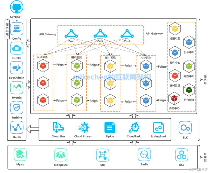 所有从设备或网站来的请求都会经过Zuul到达后端的应用程序。作为一个边界性质的应用程序,Zuul提供了动态路由、监控、弹性负载和安全功能。