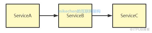 ServiceB依赖于ServiceC,由于ServiceC访问量比较大,由于ServiceC挂了,很可能ServiceB也会被拖累挂。