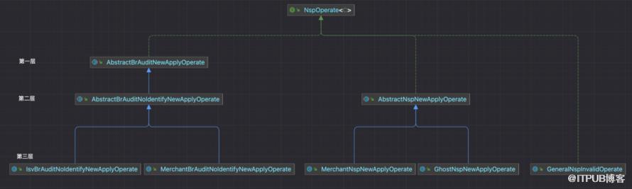 第一层:对操作类型(业务事件)聚合的维度,比如商研审核,可以在这里定义商研审核中共用的代码、自定义方法,比如:商研审核通用的入参校验,字段非空之类。 第二层:具体到操作类型维度(业务事件),比如商研审核-支持鉴别、商研审核-不支持鉴别等,这里可以定义操作类型维度下所有商品来源渠道的公共代码。比如:不支持鉴别时原因必填,商研审核调用多个系统的一连串的判断逻辑。 第三层:具体到商品来源渠道级别的具体实现,可以复用父类中的代码。