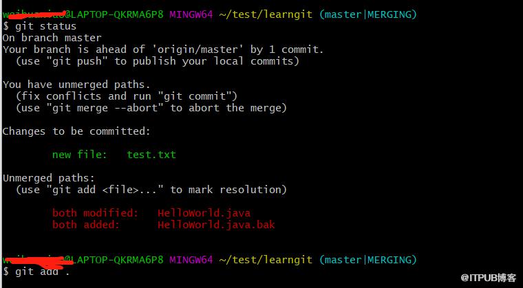 执行 git merge test得到的结果
