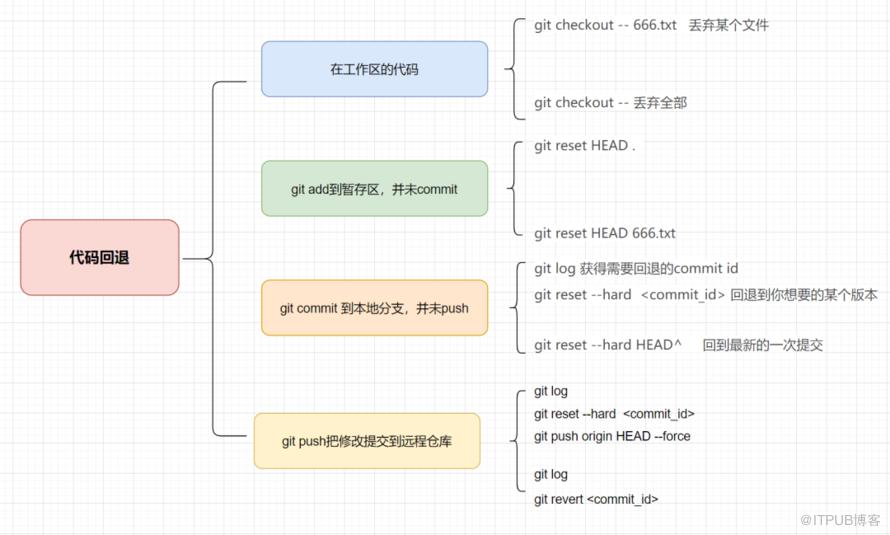 代码在Git的每个工作区域都是用哪些命令撤销或者回退的呢,如下图所示: