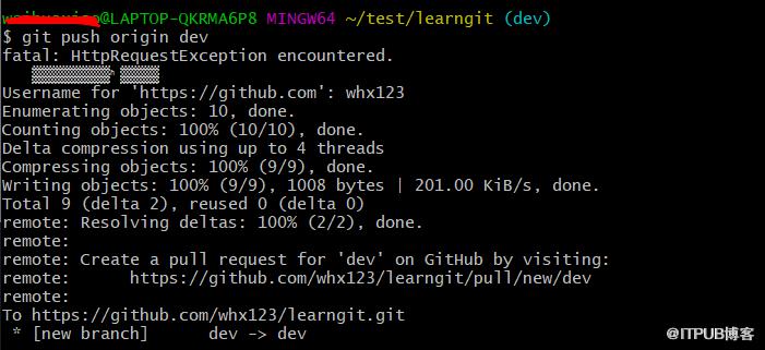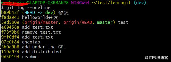 如果我们在dev开发完,或者就想把文件推送到远程仓库,给别的伙伴看看,就可以使用git push origin dev~