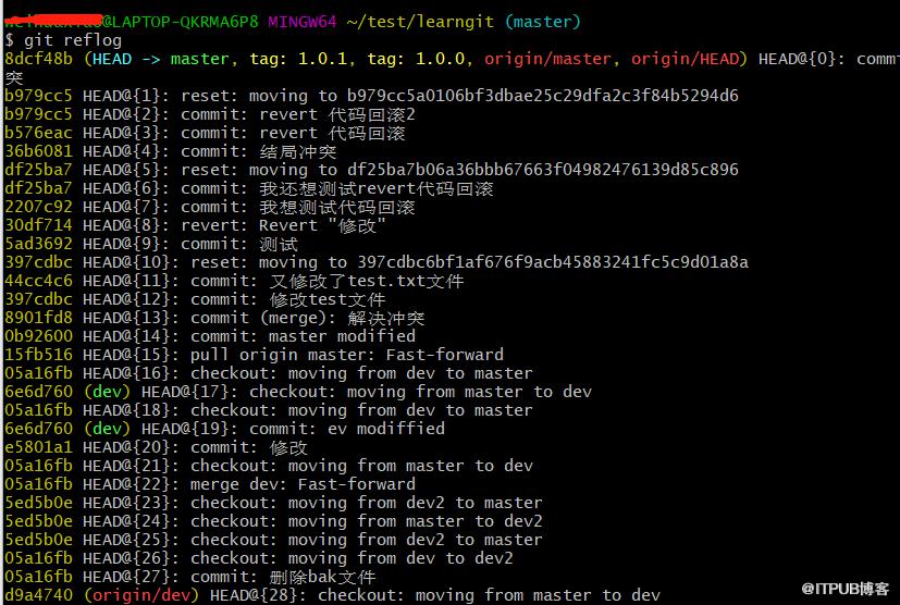 嘻嘻,看看dev分支上的提交历史吧~要回滚代码就经常用它喵喵提交历史~