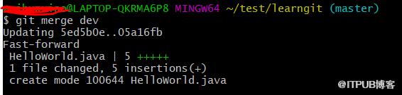 我们在开发分支dev开发、测试完成在发布之前,我们一般需要把开发分支dev代码合并到master,所以git merge也是程序员必备的一个命令。