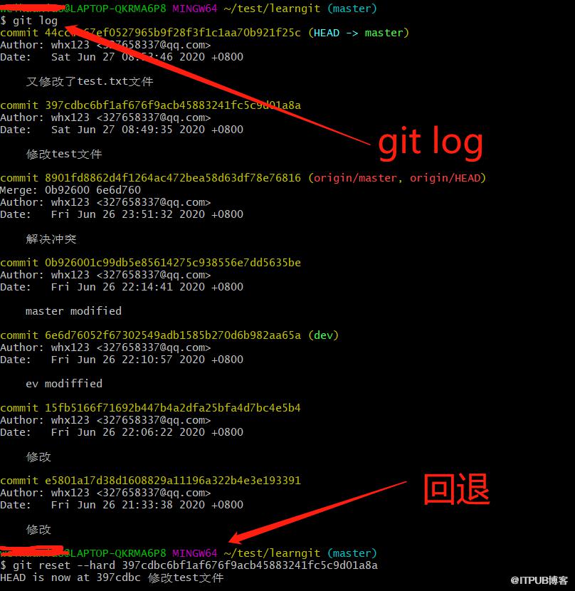 git log 获取到想要回退的commit_idgit reset --hard commit_id 想回到过去,回到过去的commit_id
