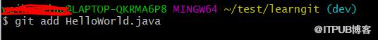 有了开发分支dev之后,我们就可以开始开发啦,假设我们开发完HelloWorld.java,可以把它加到暂存区,命令如下