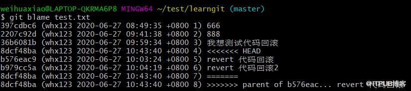 git blame 记录了某个文件的更改历史和更改人,可以查看背锅人,哈哈