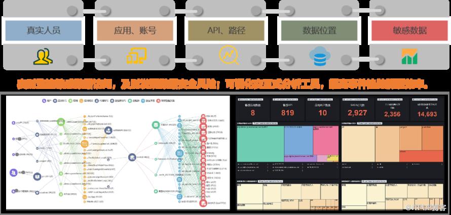 全链敏感数据访问审计 | 全面记录数据访问路径和敏感数据上下文信息,动态构建由业务用户、业务应用、API路径、原点用户、数据库账号、访问接入点、数据位置、敏感数据类型等节点组成的流转轨迹,同时可呈现位置、时间、次数等关联信息。 基于链路节点和上下文信息自定义敏感数据访问的监督看板,提升事中监督和事后溯源效能。 |