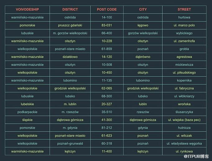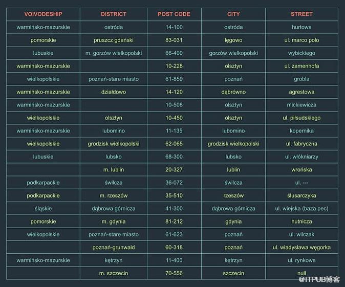 地址数据库的数据清理示例:填充缺失数据与删除不完整数据(清理后的表)