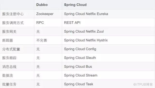 Dubbo 是 SOA 时代的产物,它的关注点主要在于服务的调用,流量分发、流量监控和熔断。而 Spring Cloud 诞生于微服务架构时代,考虑的是微服务治理的方方面面,另外由于依托了 Spirng、Spirng Boot 的优势之上,两个框架在开始目标就不一致,Dubbo 定位服务治理、Spirng Cloud 是一个生态。