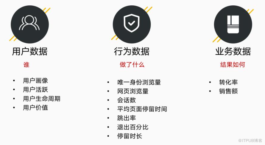 谁(用户数据)做了什么(行为数据)结果如何(业务数据)?
